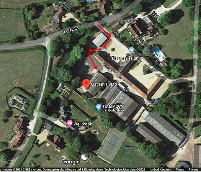 Using satnav to postcode SO51 0QJ may indicate a cottage in Dores Lane – this is NOT the Mat Finish premises.